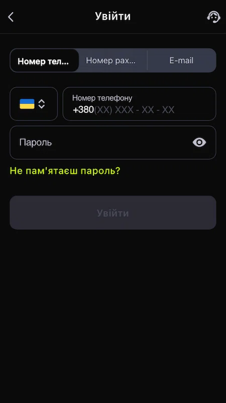 Перейдіть на офіційний сайт, натисніть «Вхід» і введіть свій логін і пароль. Якщо забули дані — скористайтеся функцією відновлення.